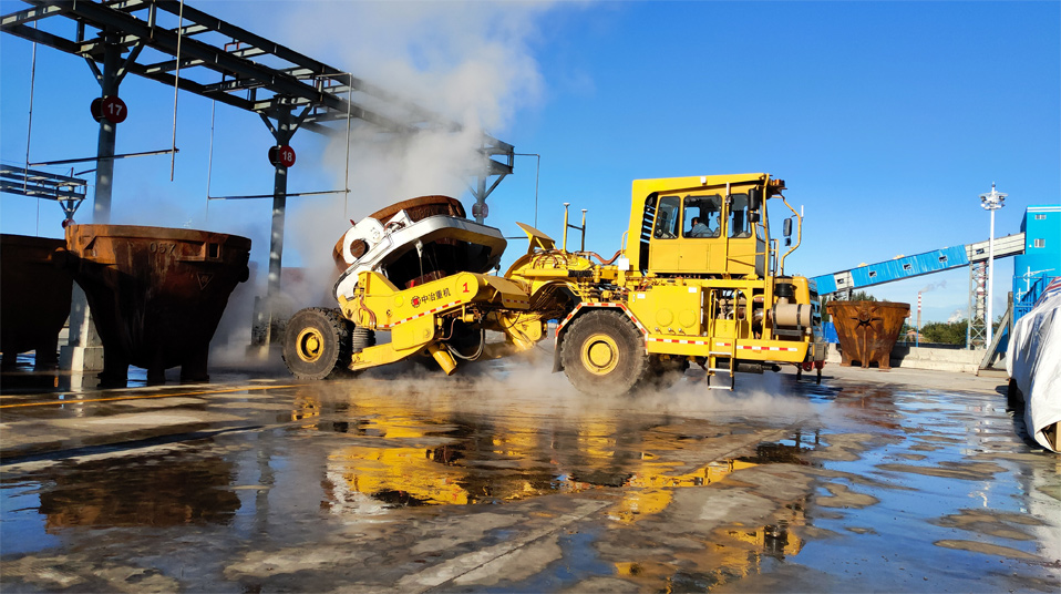 由中冶寶鋼研制的70噸鉸接式抱罐車,采用鵝頸鉸接型式,額定載重75噸,重載最高時(shí)速為每小時(shí)20公里,翻罐角度105度,最大爬坡能力8%,最小轉(zhuǎn)彎半徑9米。該車型應(yīng)用專利技術(shù)10項(xiàng),在國(guó)內(nèi)有色冶煉市場(chǎng)占有率超過(guò)75%,先后榮獲中國(guó)有色工業(yè)協(xié)會(huì)、中國(guó)鋼鐵工業(yè)協(xié)會(huì)科技獎(jiǎng),中國(guó)施工企業(yè)管理和中國(guó)循環(huán)經(jīng)濟(jì)協(xié)會(huì)專利獎(jiǎng)等榮譽(yù)。